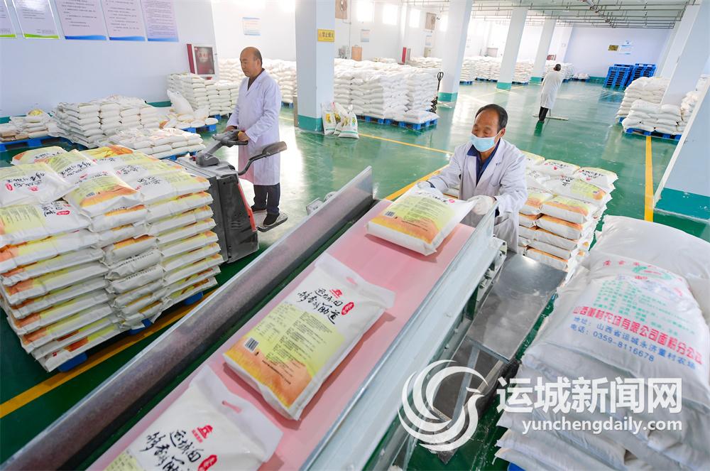 永济市董村农场有限公司面粉分公司生产车间,加工好的面粉“走”下生产线。