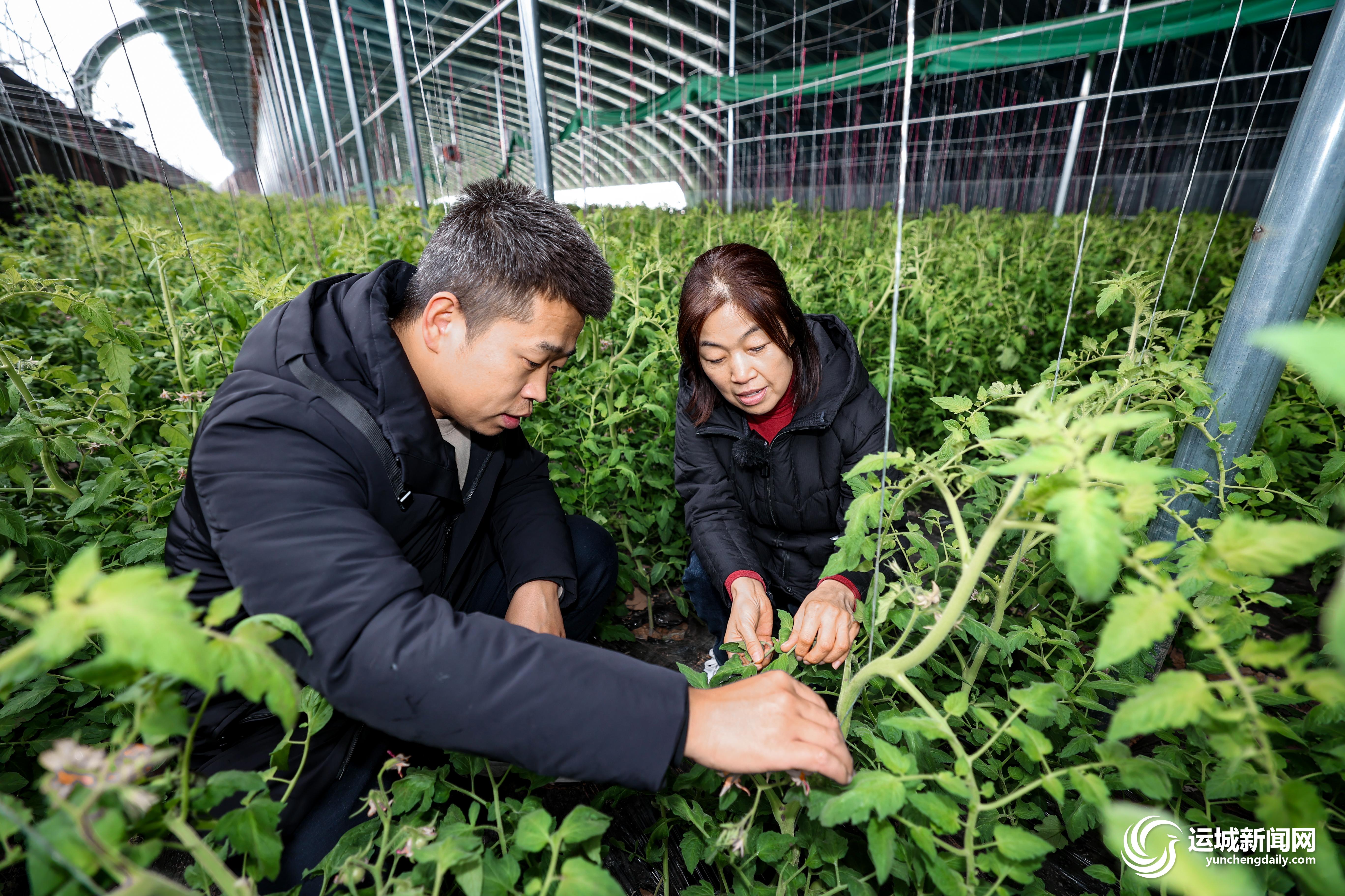 连日来,平陆县农业农村局组织农技人员深入大棚蔬菜生产一线,指导菜农科学有效防范冻害,确保蔬菜生产与供应正常有序。图为农技人员在指导菜农管理西红柿苗。 特约摄影 权永军 摄