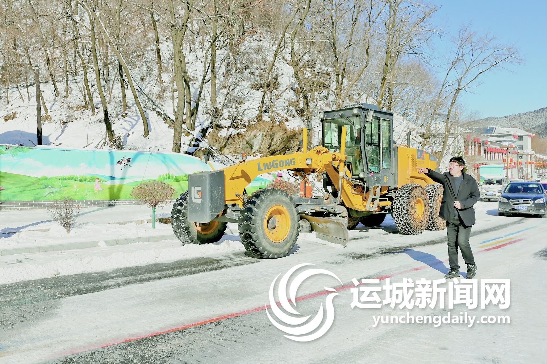 12月17日,夏县组织机械车辆和人员在县城至泗交旅游公路沿线清理积雪。特约摄影 裴国峰 摄