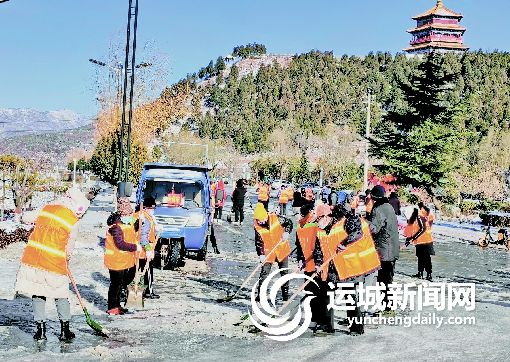 12月17日,垣曲县住建局组织力量在县城除冰除雪,确保街道交通畅通、市民出行安全。特约摄影 崔松良 摄