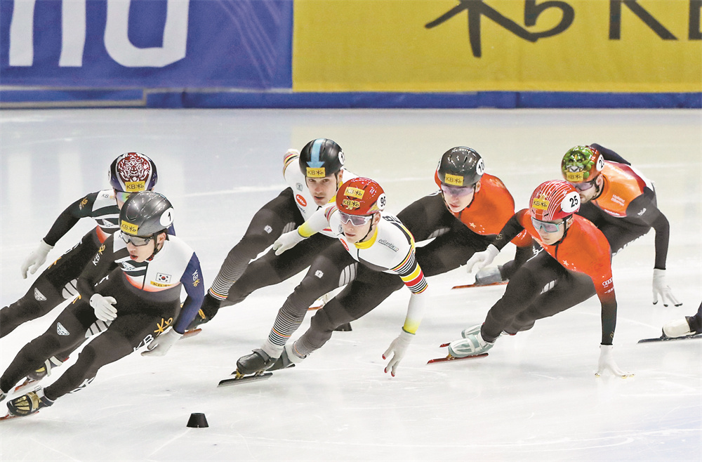 12月17日,中国队选手李文龙(右二)在比赛中。