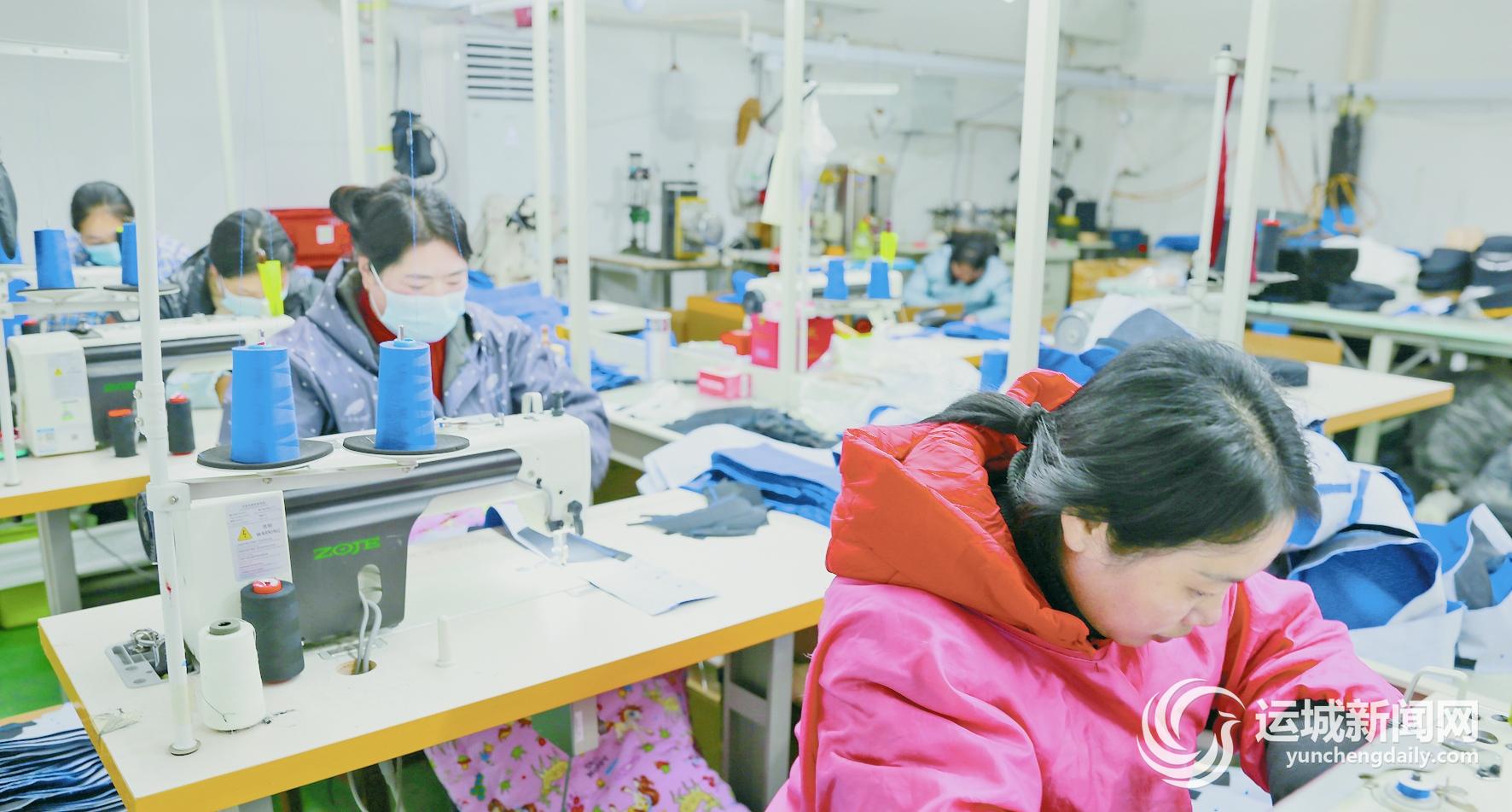 12月18日,位于夏县裴介镇大吕村的山西北冰服饰有限公司的员工在车间赶制订单产品。