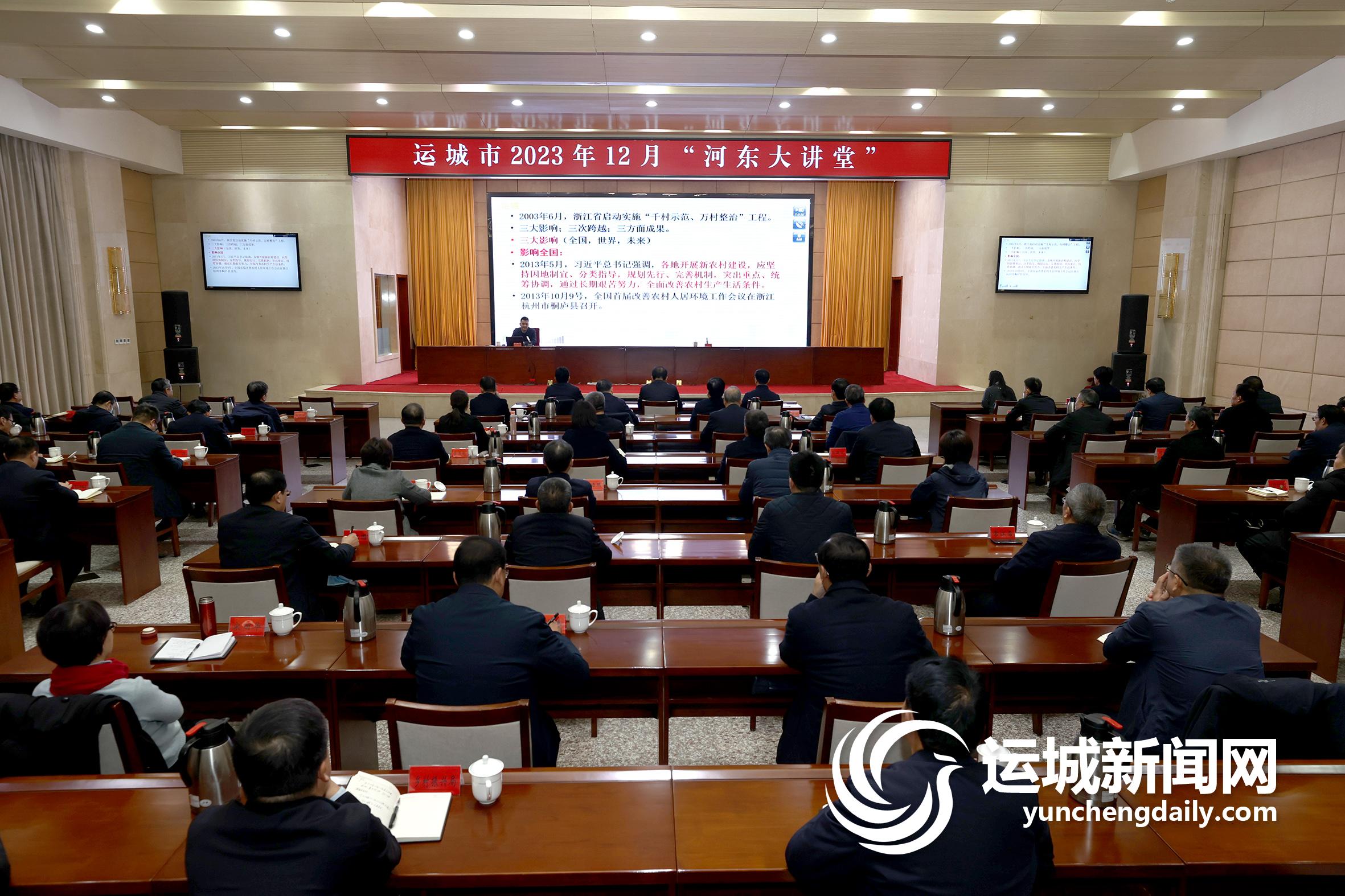 本报讯(记者 王文军)12月19日,2023年12月“河东大讲堂”举行。市委书记丁小强,市委副书记、市长储祥好,市委副书记、政法委书记王立刚,市人大常委会主任邓雁平,市政协主席张润喜等市四大班子领导聆听报告。市委常委、副市长董旭光主持。浙江省乡村建设促进会副会长娄火明受邀作专题报告。