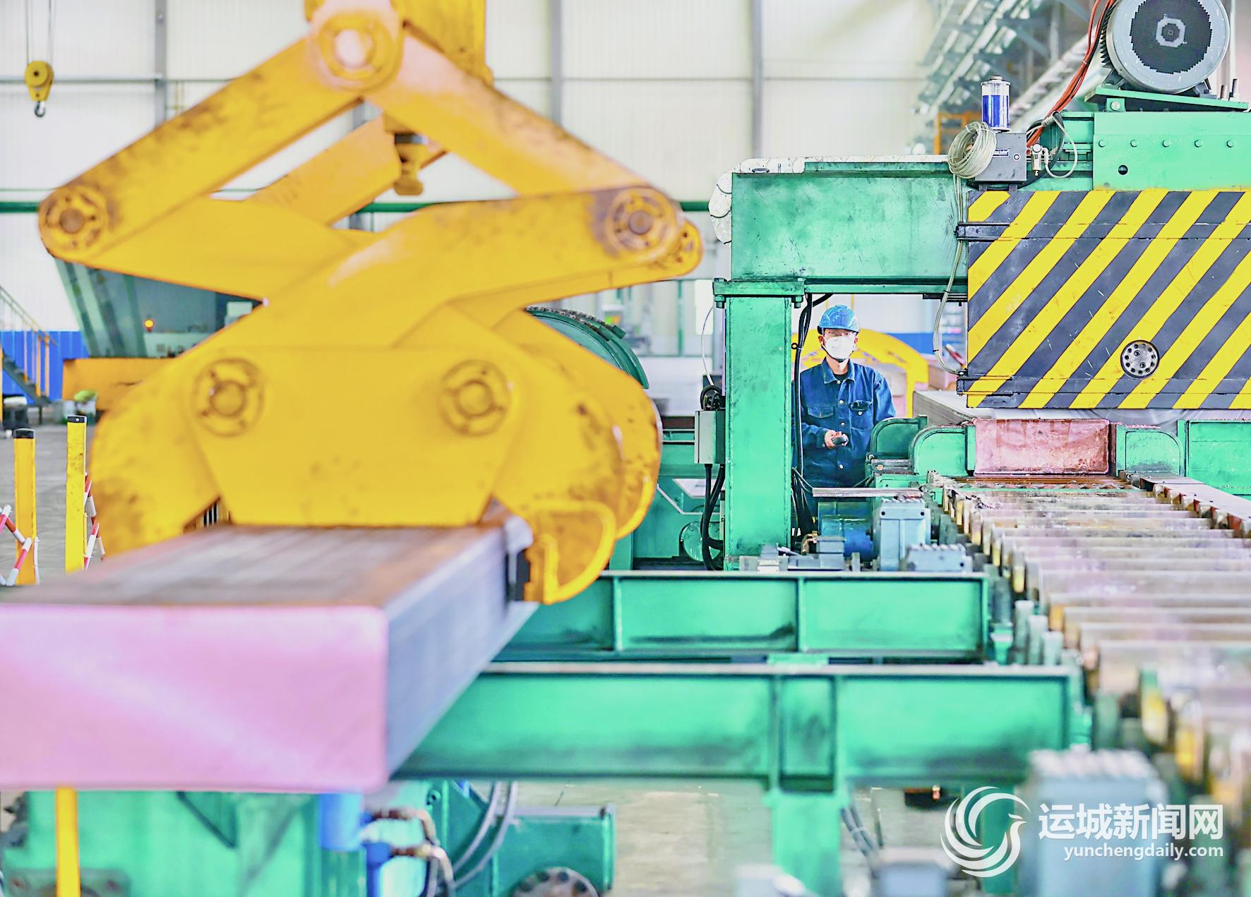 12月18日,在山西北铜新材料科技有限公司生产车间,工人在操作大型设备进行铜锭锯切作业。