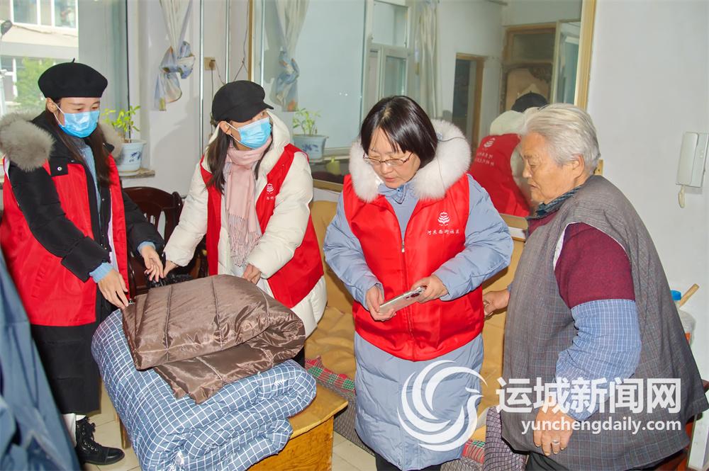 12月18日,盐湖区东城街道河东西街社区工作人员为辖区一位老年居民送去御寒的棉被、棉门帘等慰问品。 当日,该社区开展“冬季送温暖”走访慰问活动。社区工作人员为辖区老年居民送去御寒物品,并详细了解老人们的身体状况、日常生活情况、冬季取暖情况等,帮助他们温暖过冬。