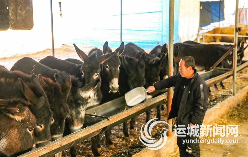 近日,夏县瑶峰镇李家坪村村民朱肖伟在饲养毛驴。2018年,朱肖伟流转200余亩土地,饲养牛和驴,种植小麦、玉米、药材,并加工秸秆黄储、使牲畜粪便还田,走出一条绿色循环发展路。同时,吸纳10余名农村闲散劳力就业。特约摄影 张秀峰