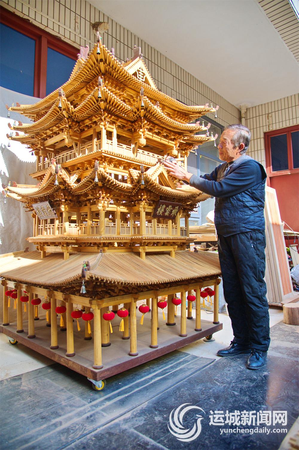 5方木料,10万多个结构部件、345组斗拱,历时两年9个月,许水山将中华第一木楼——万荣飞云楼缩小,在一榫一卯间完美重现。