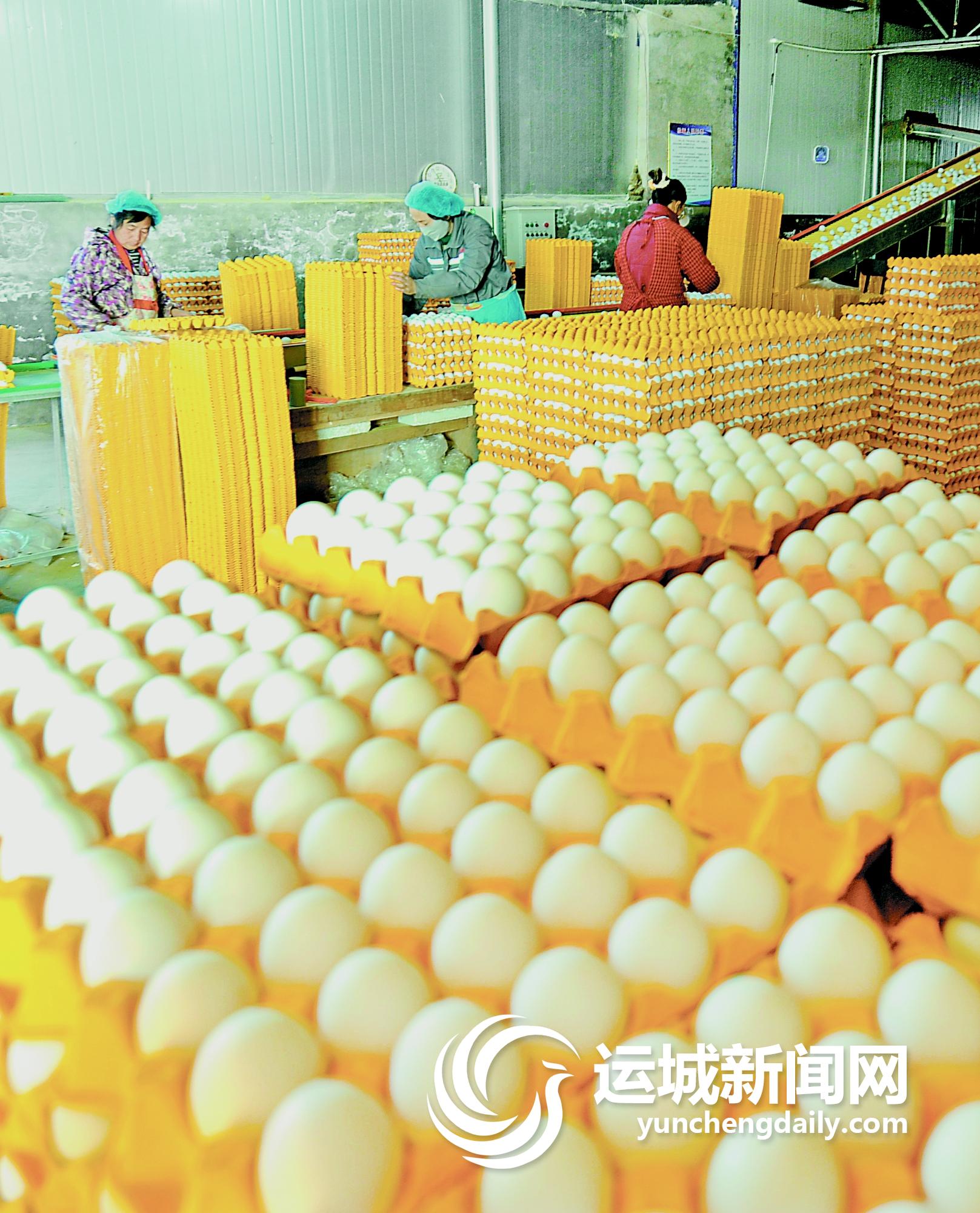 12月20日,在位于万荣县里望乡的山西振达养殖有限公司平原养殖基地,员工们在分拣商品鸡蛋,准备外运销售。