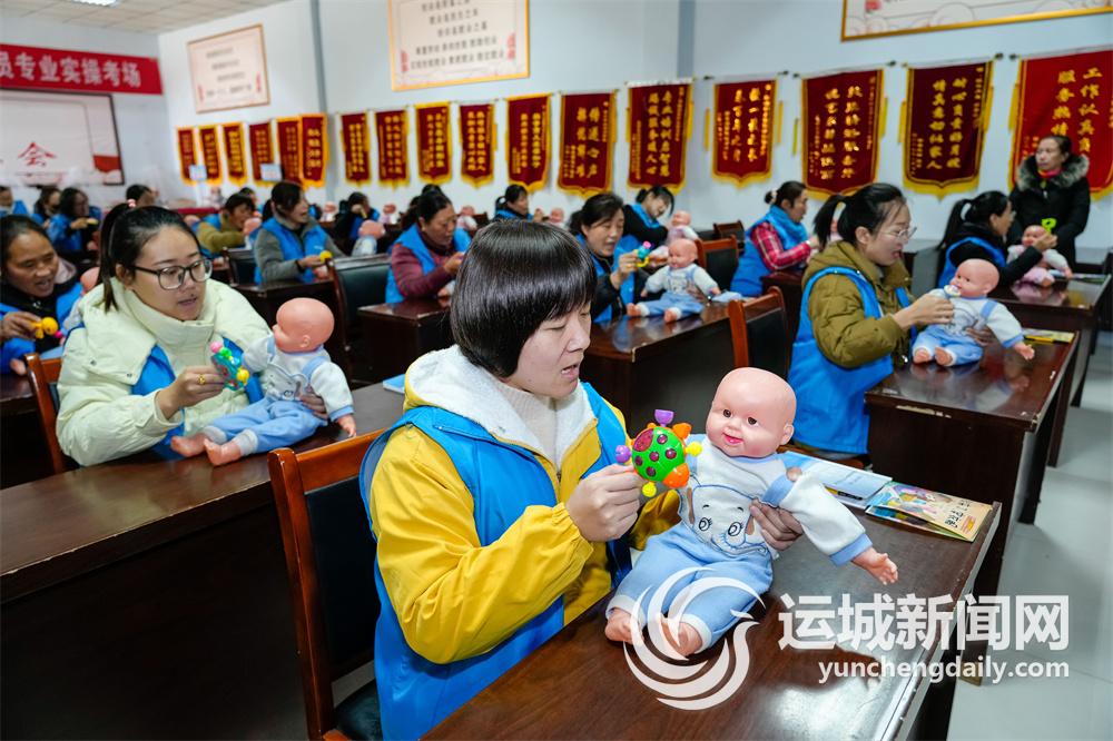 12月24日,学员在平陆利丰职业培训学校学习育婴技能。