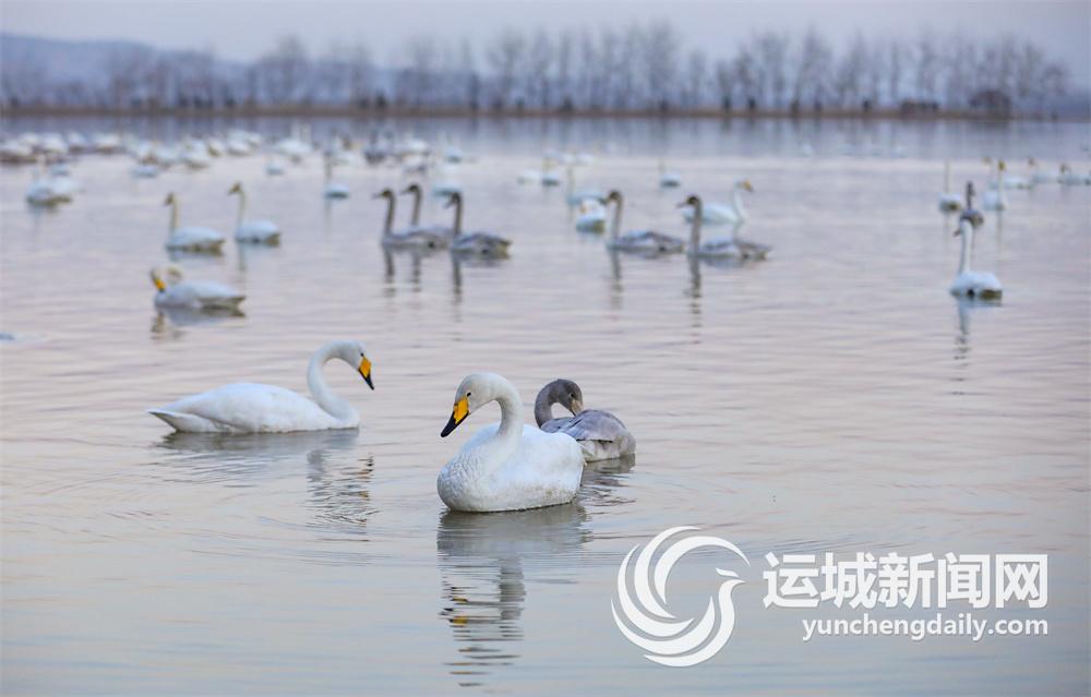 12月份以来,从西伯利亚来的数千只天鹅在这里栖息,它们或悠然游弋,或展翅翱翔,在圣天湖黄河湿地自由觅食、栖息。