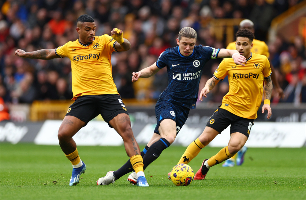 当日,在2023-2024赛季英格兰足球超级联赛第18轮比赛中,狼队主场以2比1战胜切尔西队。 新华社/路透