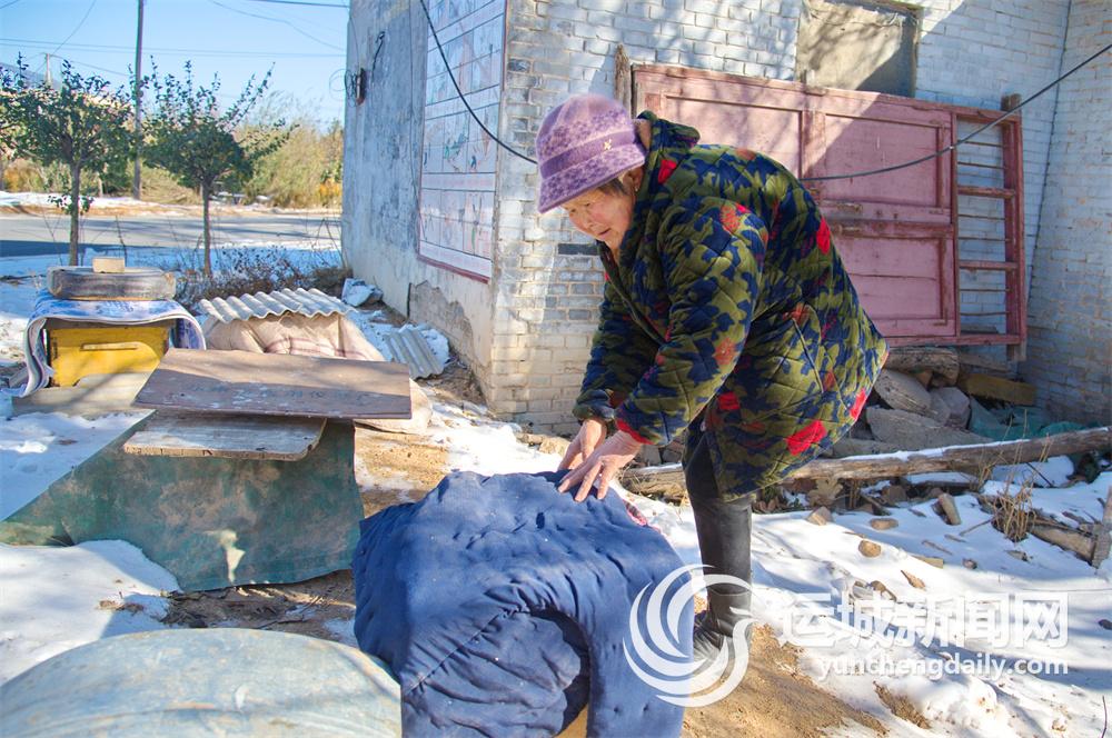 “贠阿姨,在家吗?”“来了,来了。”贠阿姨边答应着,边从屋旁的蜂箱边探出头来。“我正在整理蜂箱呢,你们稍等一下。”贠阿姨拍了拍身上的土,招呼我们进屋,“冻坏了吧,快到家里暖和暖和,外面冷。”