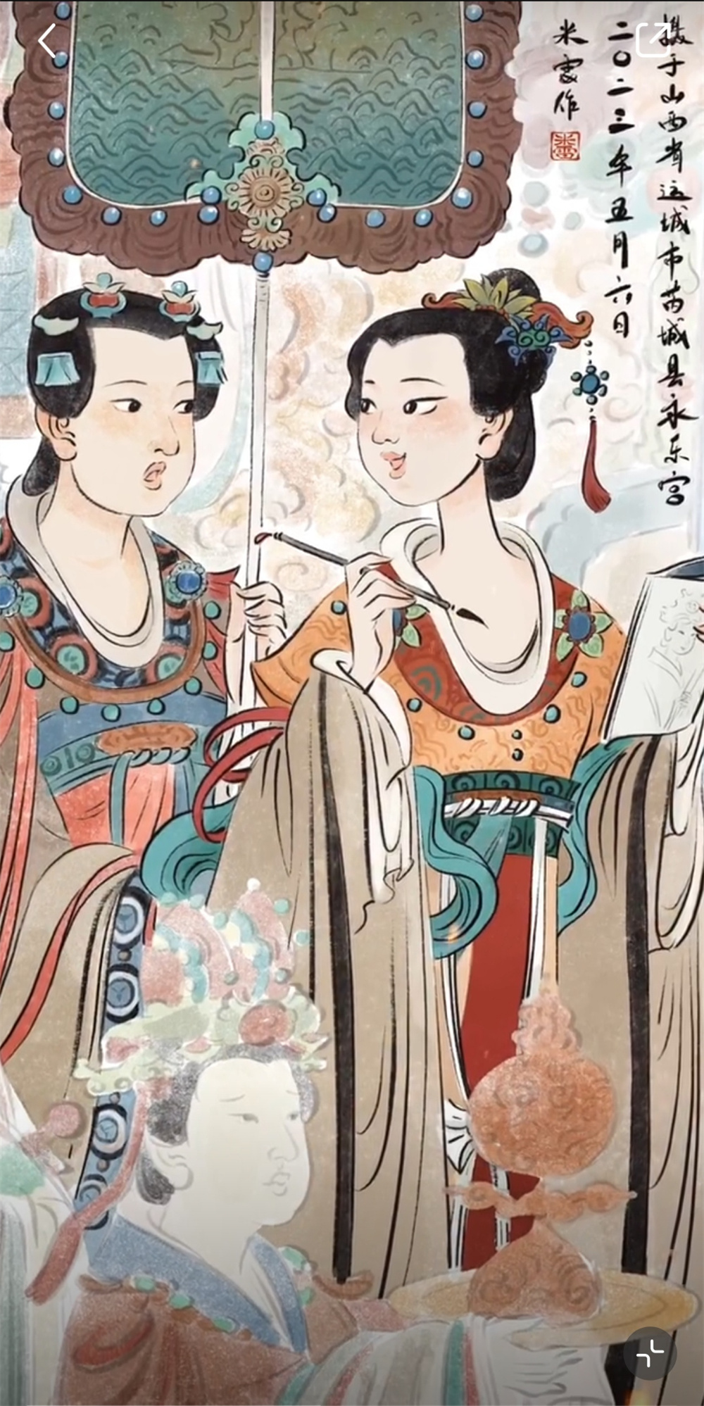 米雷创作的永乐宫壁画漫画。(视频截图)