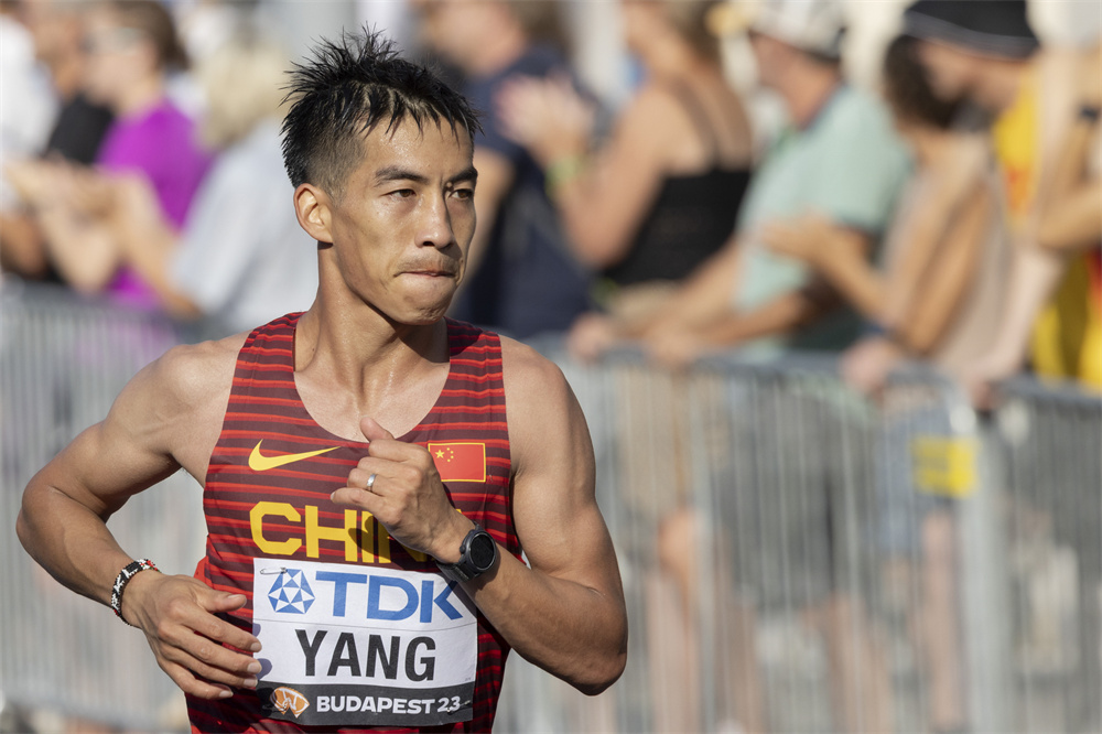 这是2023年8月27日,杨绍辉在世界田径锦标赛男子马拉松决赛中。