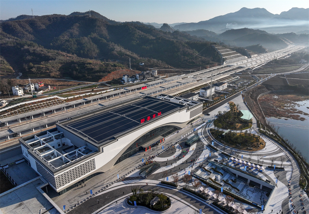 这是12月27日拍摄的安徽省黄山市黟县东站(无人机照片)。