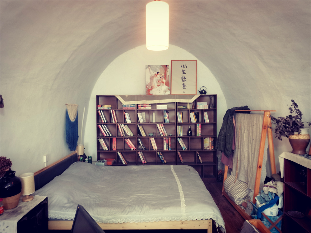 读者飞花在微信上给记者留言,说有一段已经放下的情愫,想和记者聊聊。记者问她在哪里,她说在平陆张店流沙小院,并邀请记者去她那里一见。她拍了两张小院的照片发给记者,小院装修风格很独特,是记者喜欢的感觉。飞花说正好她的朋友要开车从运城去小院,让他们叫上我,一起到院子里烤红薯。记者知道自己抵抗不了那小院的魅力,更抵抗不了烤红薯的诱惑,就随着飞花的朋友辗转来到了那个偏僻的小院。小院很有特色,是由一个老旧的地窨院改造的,据院主阿浪说,他喜欢户外旅行,偶然发现这个一面靠崖、一面靠沟的荒院子就喜欢上了。于是他多方联系主家租了这个废弃的地窨院,和几个喜欢户外的朋友集体打造了这个心灵栖息之地。院子里有四孔窑洞,装饰各异,给人慵懒且洋气的感觉,有那种高档民宿的气场,却透着舒适自然的格调。尤其是院主的房间里,靠墙有个原木的书架,还有老绣片及唐卡的装饰,很有氛围感。