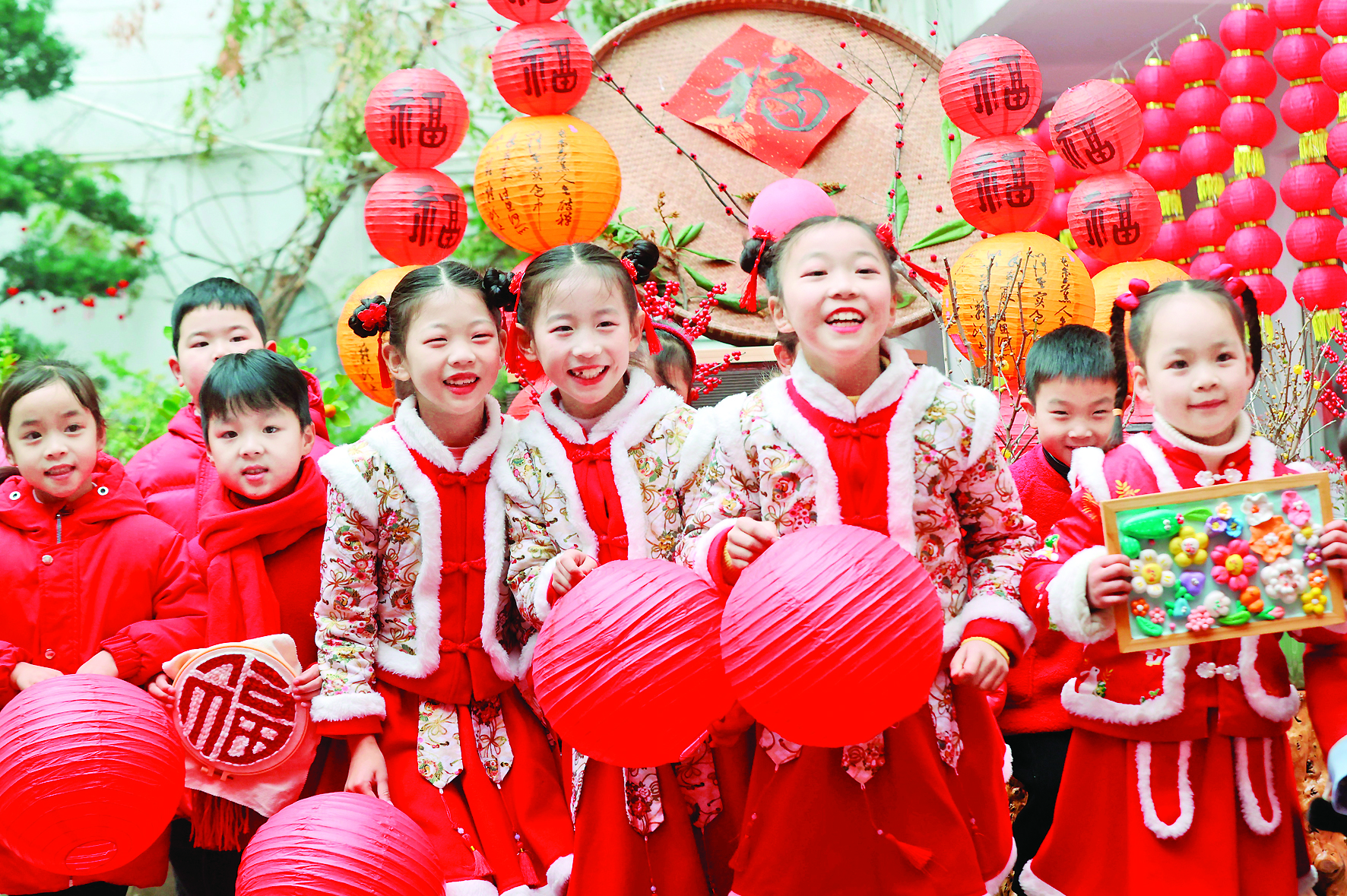 2023年12月30日,在浙江省湖州市德清县雷甸镇社区教育中心,小朋友在迎新年活动中表演节目。