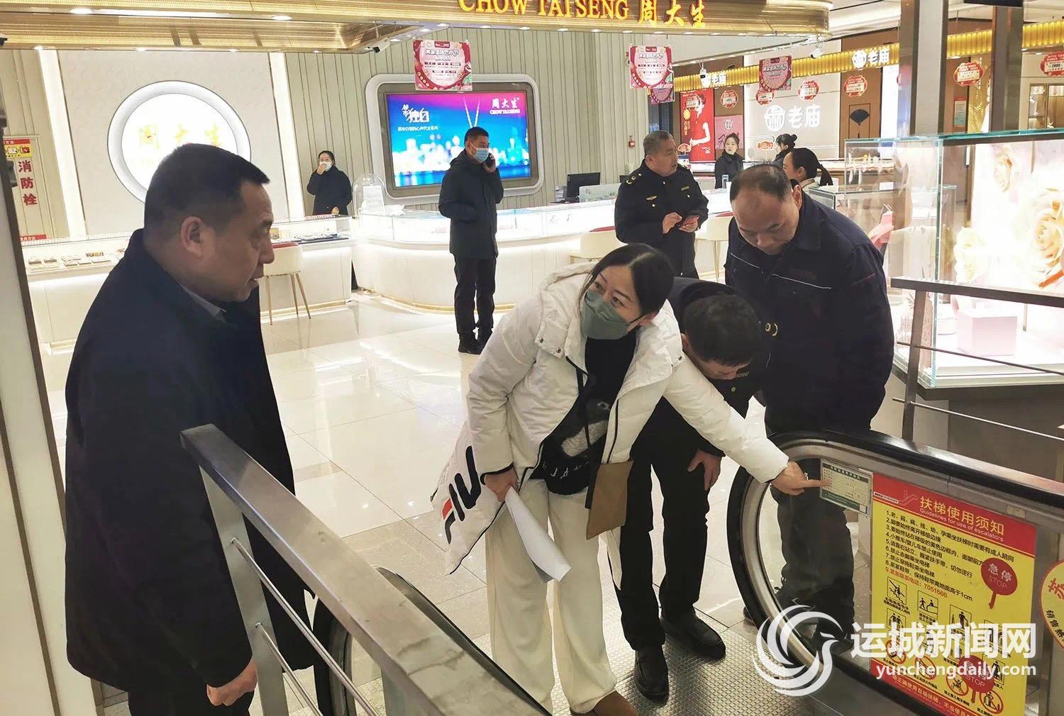 ▲督导组在闻喜县南风百货检查电梯运行情况