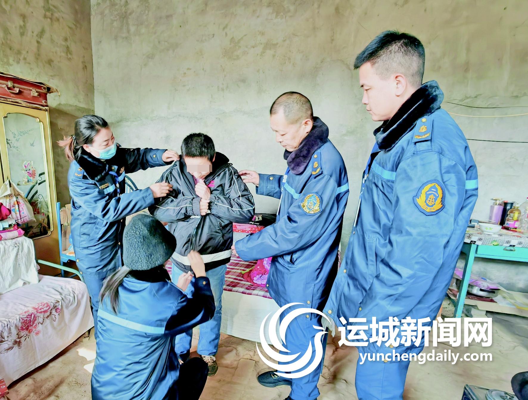1月2日,运城公路分局长直公路超限检测站志愿服务的队员来到垣曲县长直乡长直村,开展了“爱心送温暖”活动,把筹集到的棉衣送给18户困难群众,把党的温暖送到了群众的心里。吕成民 摄