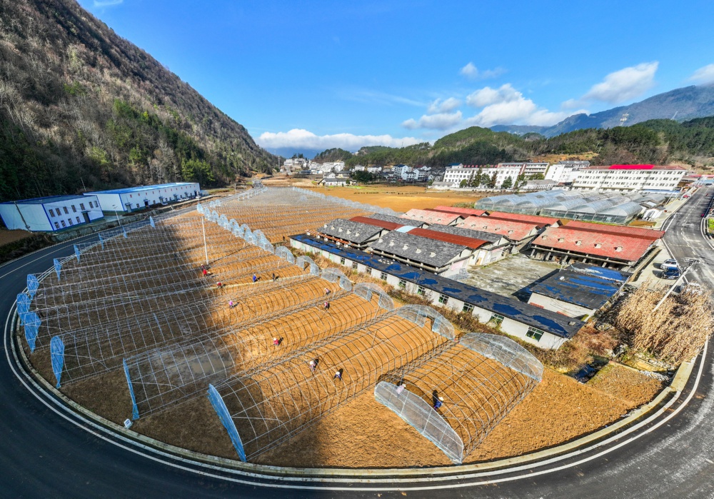 1月3日,湖北省宜昌市秭归县磨坪乡磨坪村村民在现代农业产业园里劳作。新华社发(王 罡 摄)