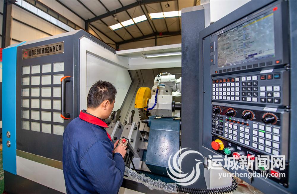 1月3日,山西风源机械制造有限公司技术人员在调试即将出口的数控旋风铣机床。