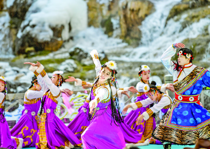 1月4日,演员在中国九寨沟第十九届国际冰瀑旅游节开幕式上表演。