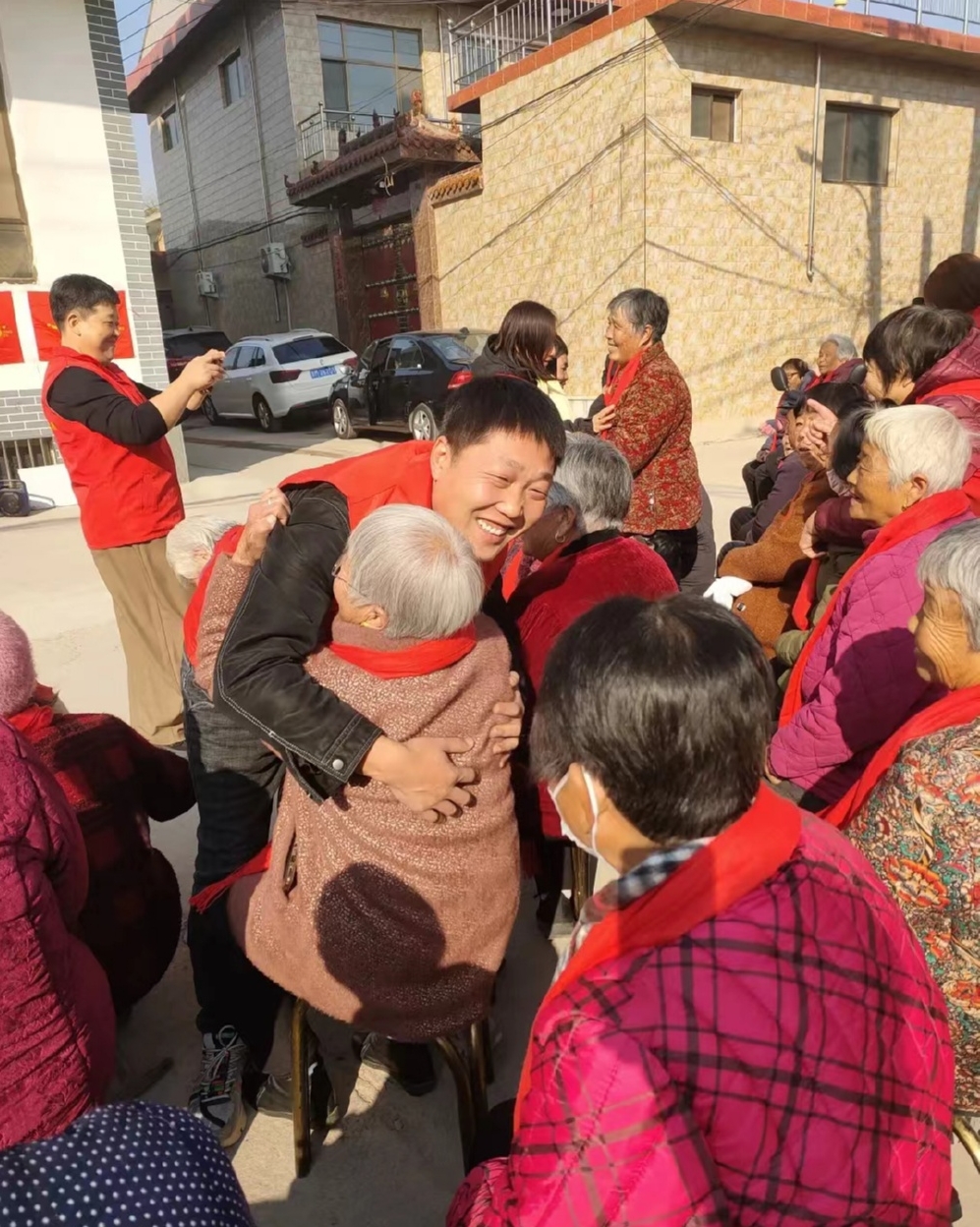 2023年12月份,思微姐姐一行29人,每人捐出50元,去了闻喜县礼元镇文典村,给那里的老人送去了温暖。村里近百位老人和思微姐姐一行进行了联欢,老人们开心地戴上了思微姐姐送给他们的红围巾。