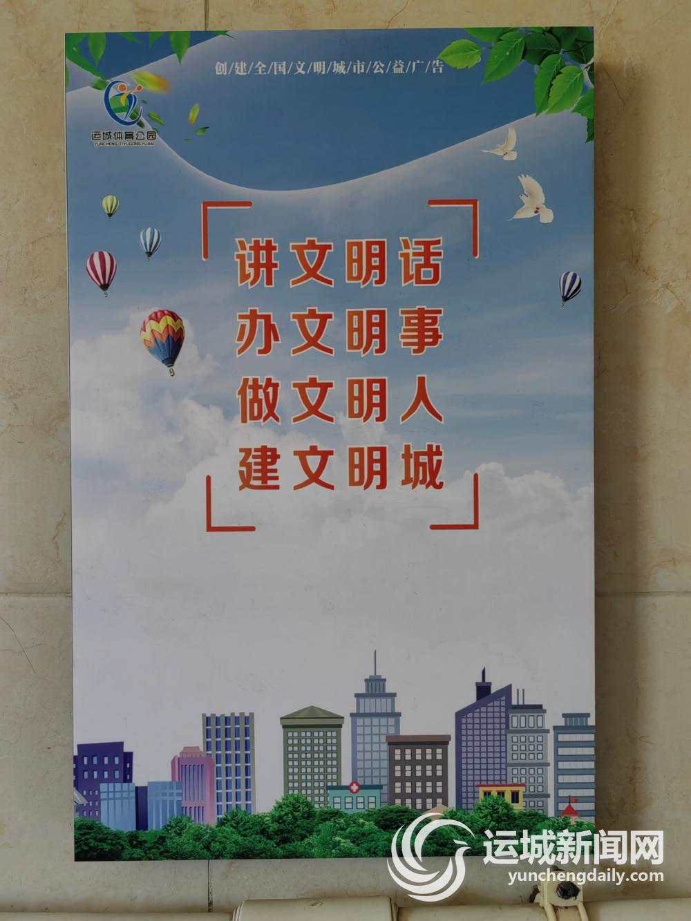 张军表示,公园是市民运动健身、散步游玩的场所,代表着一座城市的文明形象。去年下半年,他们根据文明创建的需要,在公园公厕、各出入口、各体育健身场地、绿地等位置,布置了内容丰富的文明公益广告牌,希望通过润物无声的方式让文明深入每一名市民心中。
