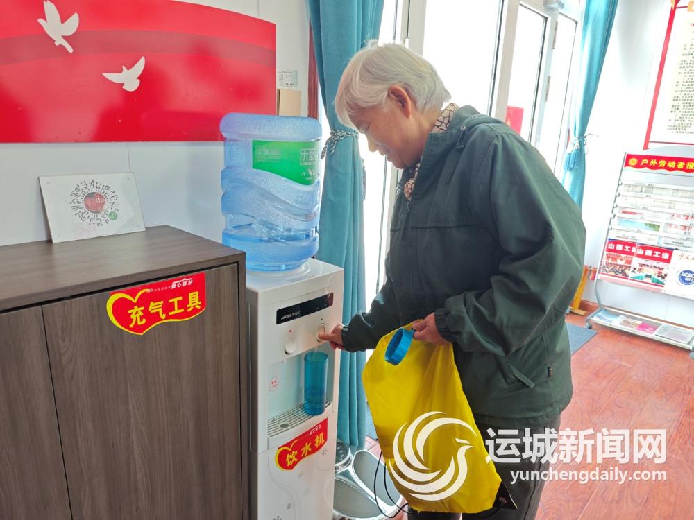 “今天太阳不错,我来公园散散步,刚好口渴了,到驿站里接点水喝。”杨女士一边接着水,一边夸赞公园的配套服务,“体育公园的环境氛围挺好,我退休后也没啥事,每天可以来公园转转。这个爱心驿站可以说是‘麻雀虽小,五脏俱全’,不仅可以喝水休息,还能读书看报。”