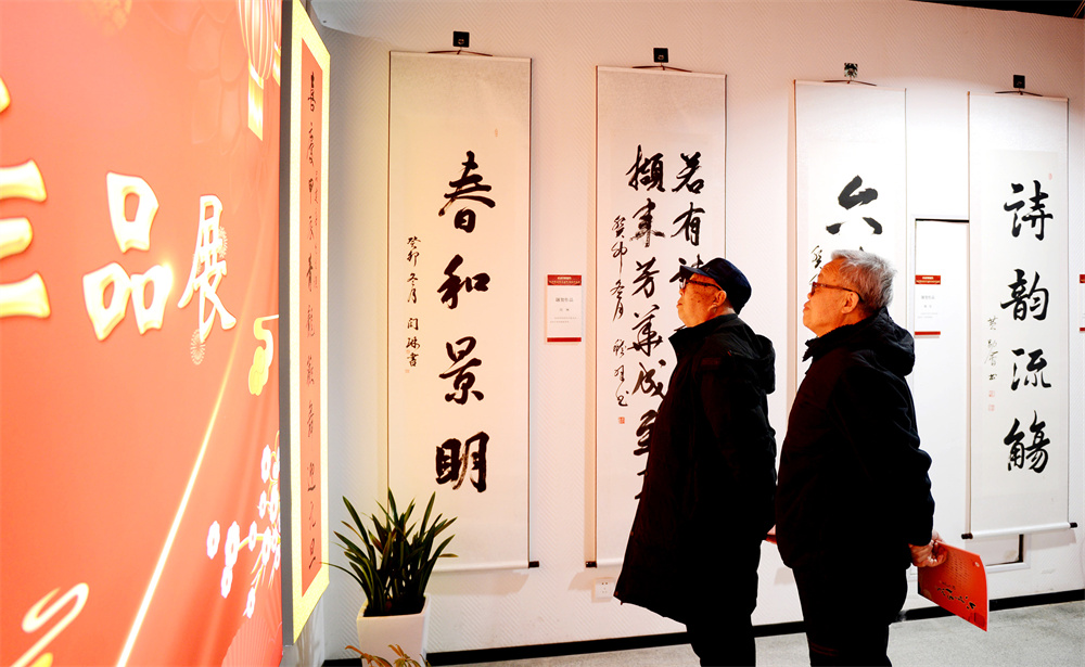 在展览开幕式上,临猗县六牛诗社社长谢鹰为与会嘉宾逐一介绍了参展作品的创作背景和经过,让大家更深刻理解了诗联书画作品背后的深刻寓意、文化内涵等。置身临猗县美术馆展厅,欣赏近百幅书法绘画作品,其诗之妙、其书之神、其画之韵……令观众深深体会到诗人和书画家创作背后的独到匠心及他们对祖国、对家乡、对艺术的无限热爱。 (张新征)