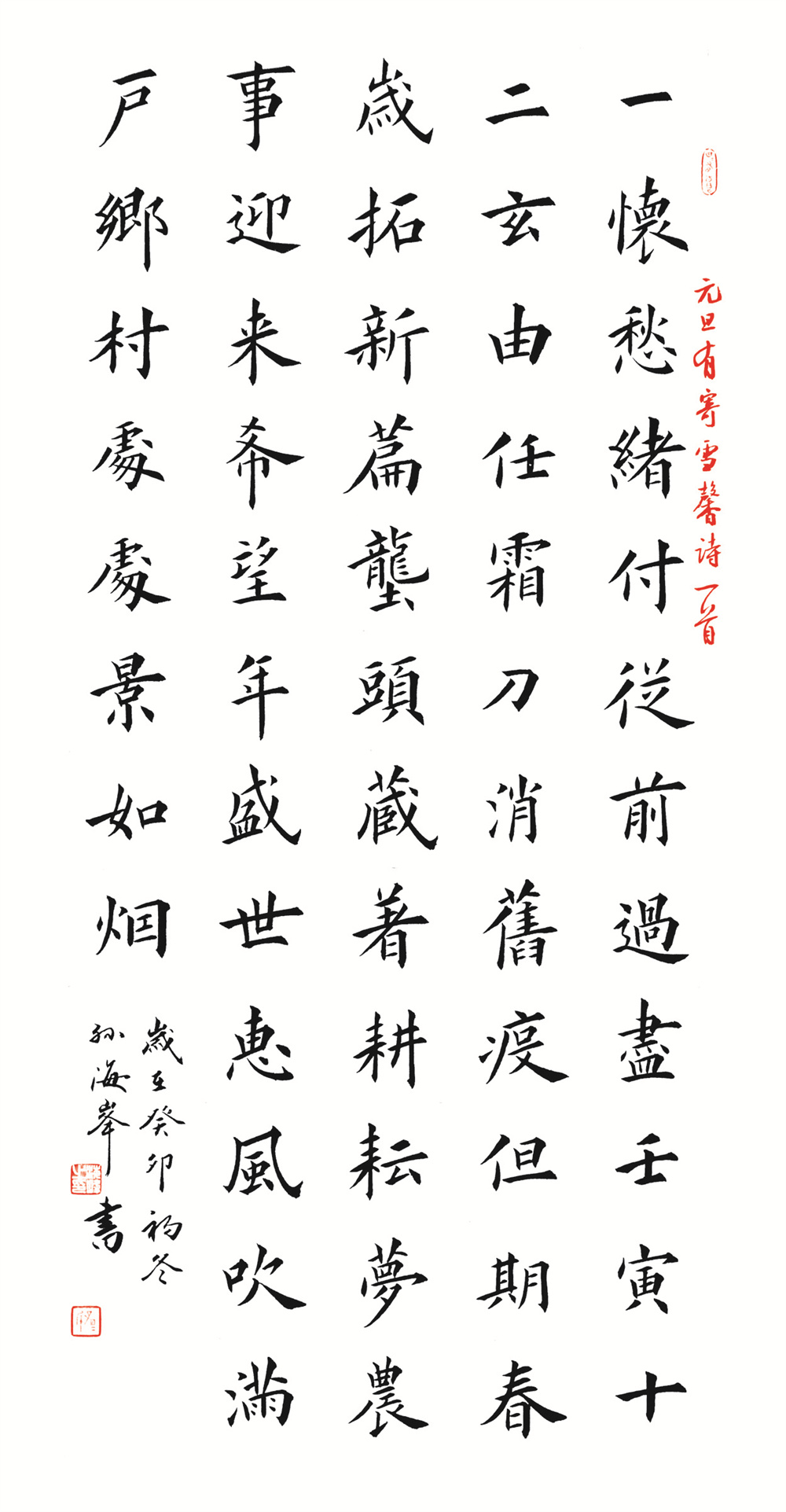 为切实办好此次展览,临猗县六牛诗社作了精心的安排部署。他们首先在社员中开展“庆元旦迎新春”原创诗词楹联作品征集活动,对征集作品收集整理后择优选用。在此基础上,由书法绘画老师或就征集作品进行二次创作、或就自选内容进行创作。经过层层筛选,精心打造,最终选出92幅书法绘画作品参展。