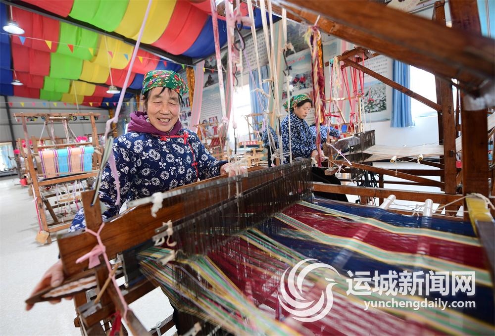 永济市开张镇东开张村惠畅文化创意有限公司生产车间内,妇女们利用传统工艺纺线织布。该公司带动周边20多个村庄800多名妇女就业,成为当地群众增收致富新的“领头羊”。
