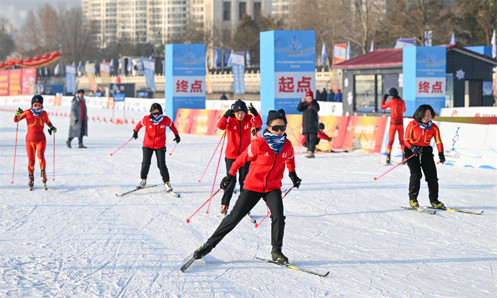 1月10日,福建队运动员在东河冰场训练。第十四届全国冬季运动会群众比赛将于1月13日至14日在内蒙古呼和浩特市东河冰场举行,比赛设置速度滑冰、越野滑雪两个大项。