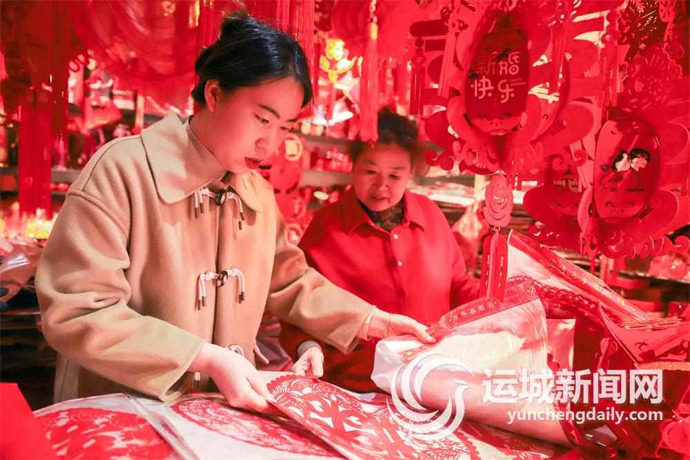春节临近,市区各大市场各种年货纷纷“上线”,琳琅满目、种类繁多。图为1月7日市民在运城经济技术开发区年货市场购买龙年饰品。