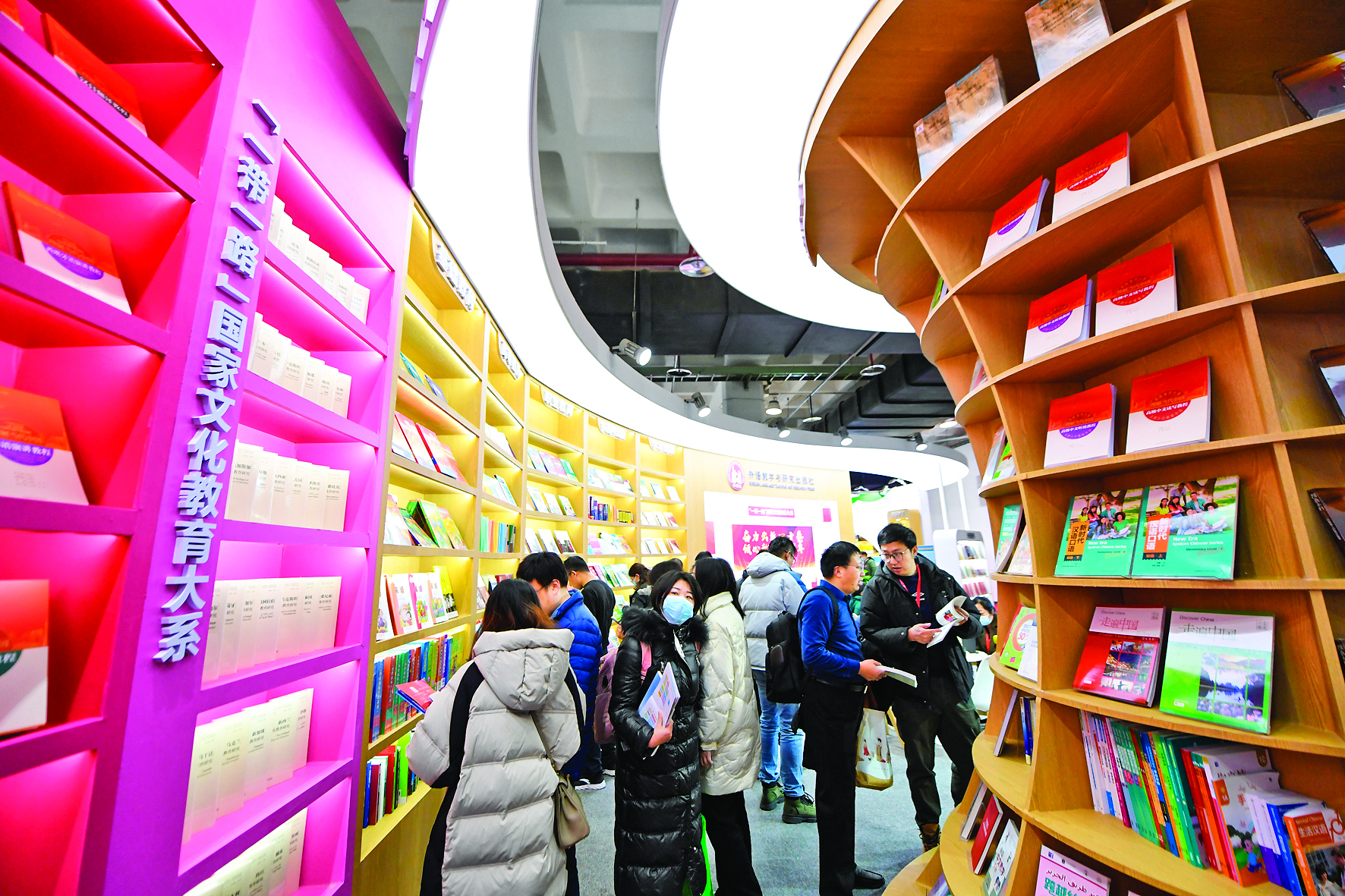 1月11日,参观者在2024北京图书订货会上阅览书籍。