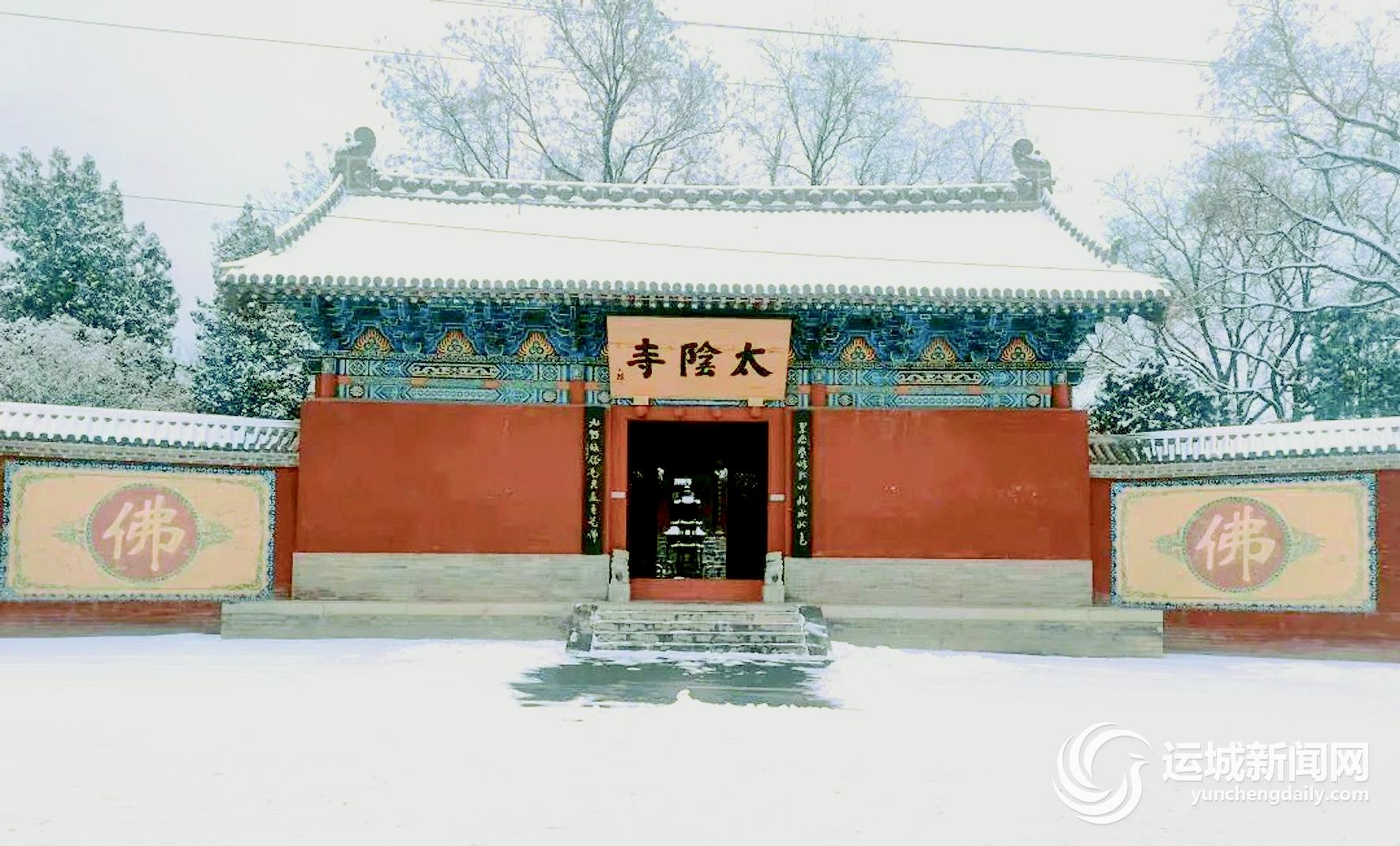 历史悠久的千年古刹新绛龙兴寺红墙青瓦上覆着圣雪,白雪点缀的塔檐重重叠叠,神韵悠悠。