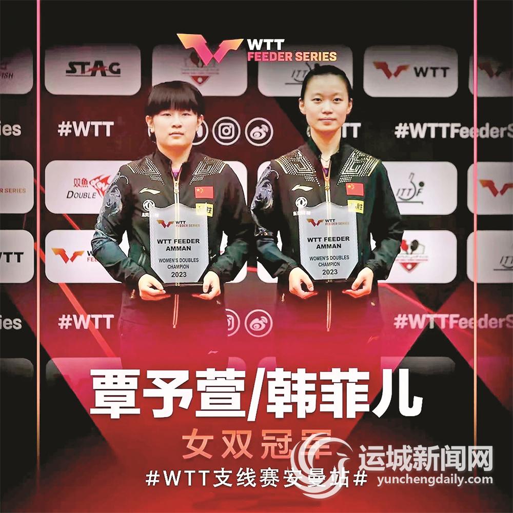 2023年2月5日,世界乒乓球职业大联盟(WTT)支线赛安曼站比赛落幕,中国队包揽全部5项冠军。其中,我市国乒新生代小将韩菲儿与北京队选手覃予萱搭档,夺得女子双打冠军。