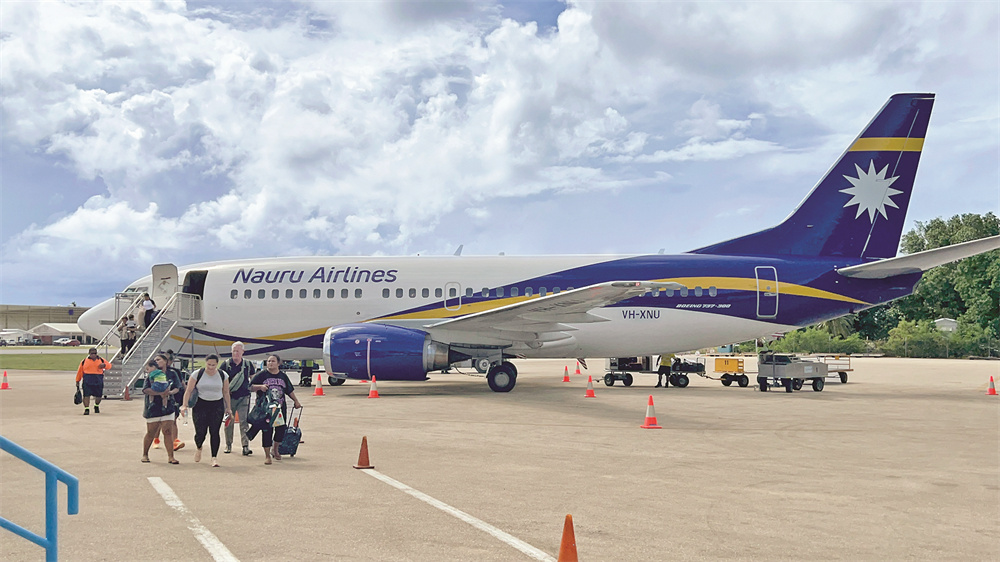 1月17日,新华社记者乘坐的客机抵达瑙鲁机场。