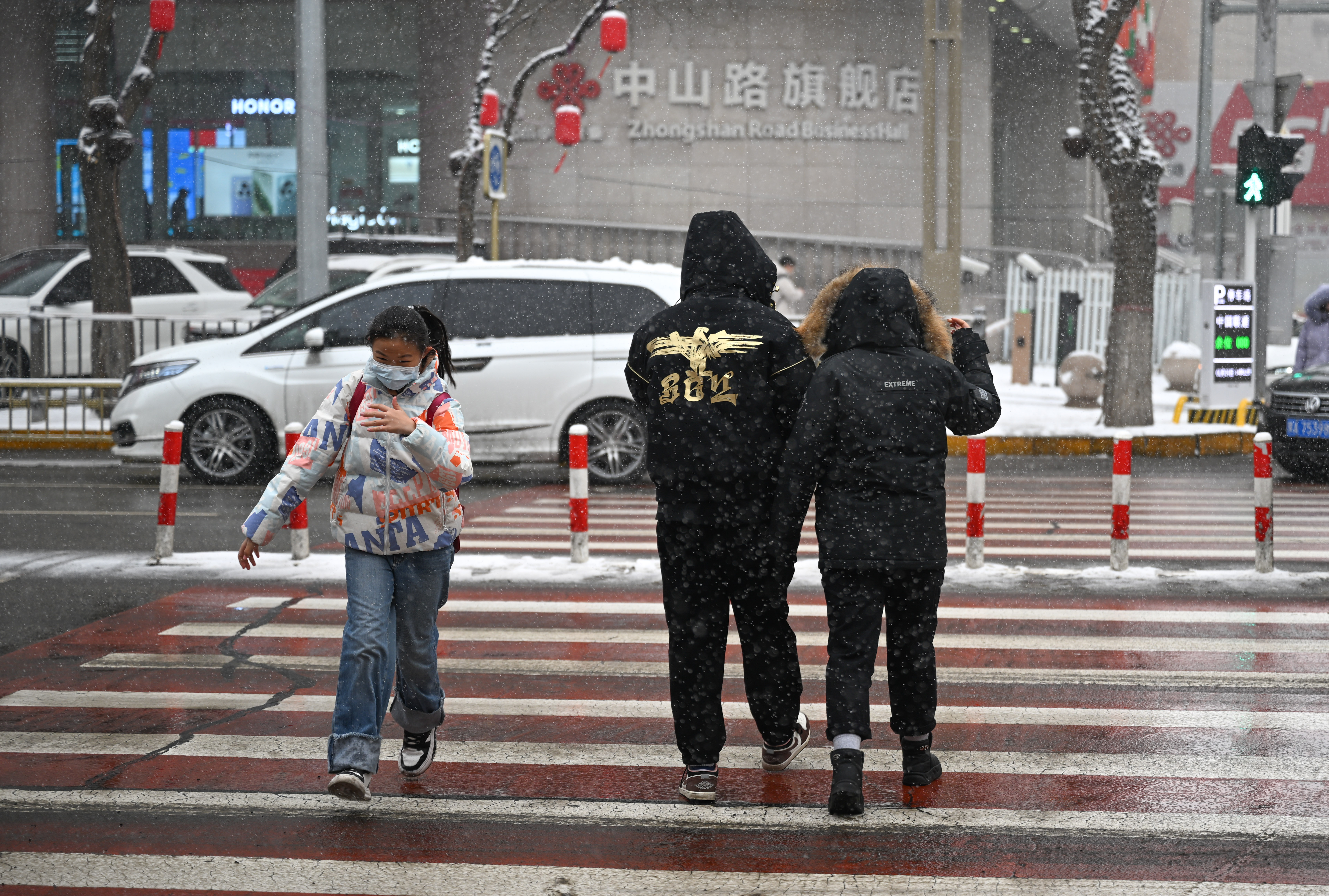 1月19日,行人通过内蒙古呼和浩特市中山东路一处人行横道。据中央气象台预报,20日至23日中国将迎来今年首场寒潮天气过程。新华社记者 贝 赫 摄