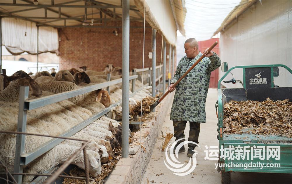 绛县郝庄乡养殖场内,工人在给羊喂饲料。记者 陈方斌 摄
