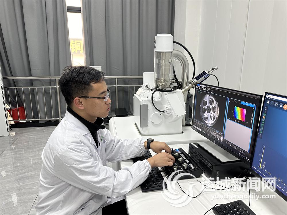 铜基新材料山西省重点实验室内,研发人员操作扫描电镜观测红化处理箔表面形貌。
