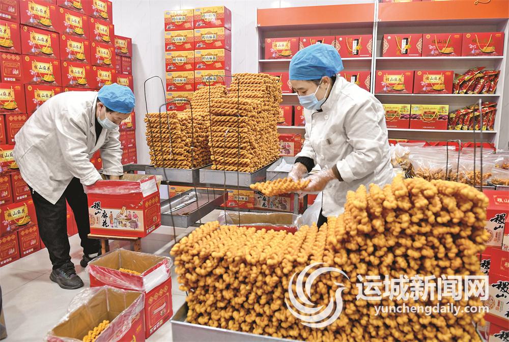 1月20日,稷山县老口味麻花作坊的面点师在整理、包装制作好的麻花。