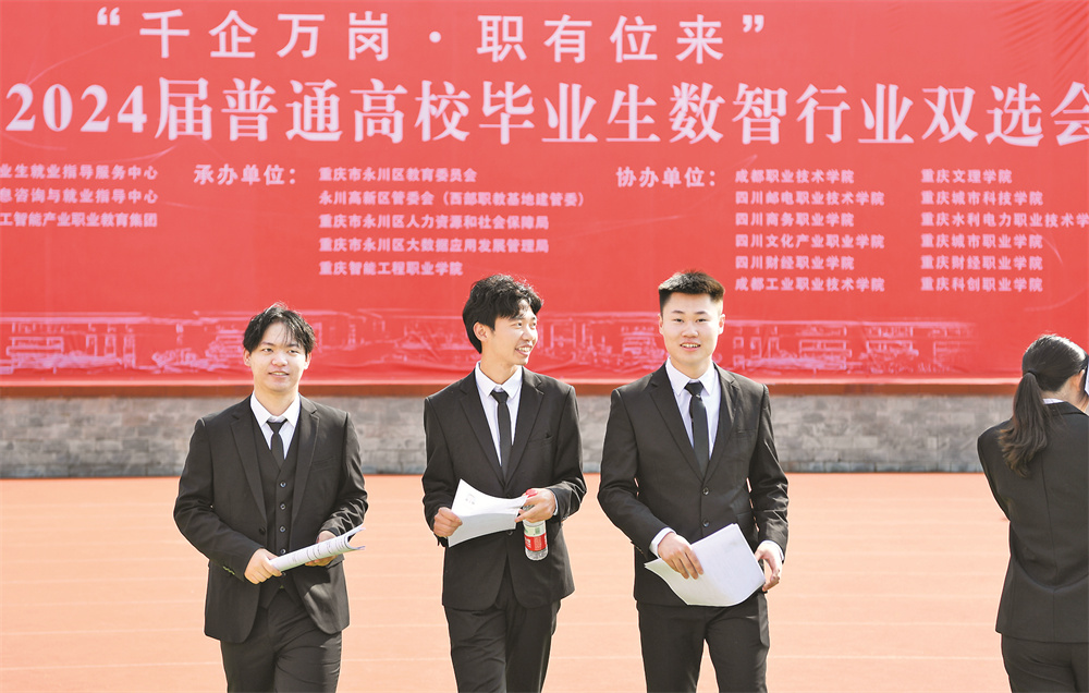 2023年10月20日,成渝地区2024届普通高校毕业生数智行业双选会在位于重庆永川区的重庆智能工程职业学院举行。这是学生在双选会上。 新华社记者 王全超 摄
