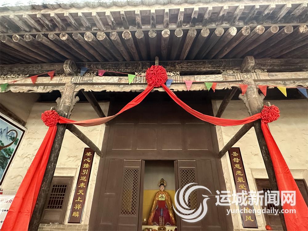 正殿正中供奉的是后土圣母像,左侧是送子娘娘,右侧是送书娘娘。传说,人类需要繁衍后代,圣母便化为送子娘娘助百姓生儿育女,社会需要文化知识,圣母便化为送书娘娘助人茁壮成长,学业有成。为了感念后土恩情,百姓便在民间建庙奉祀。
