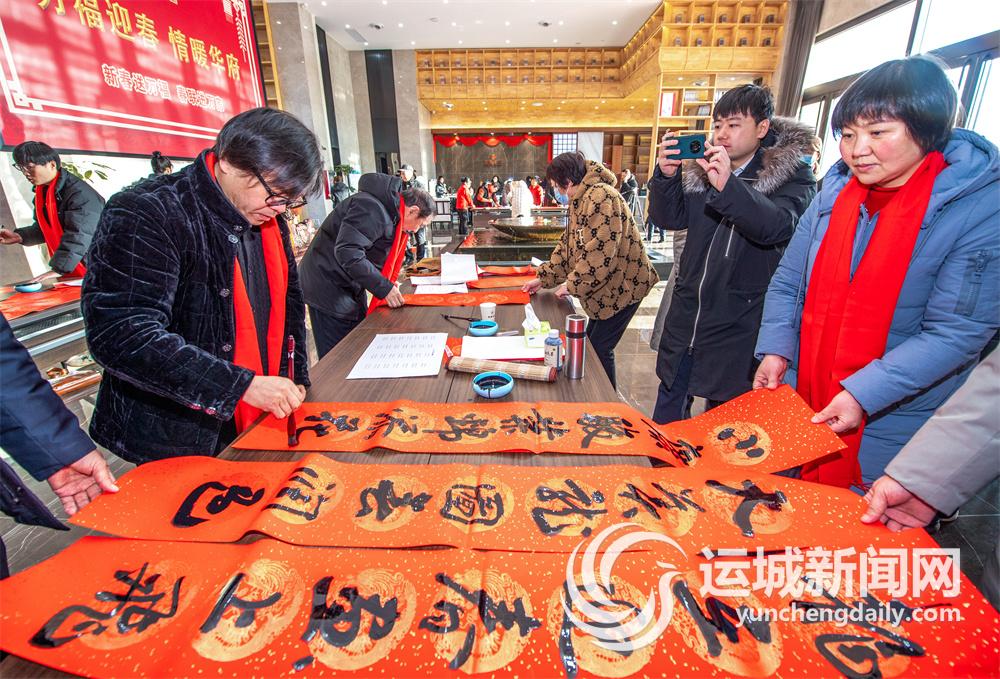 运城晚报讯(记者 薛俊)1月22日,市区鼎鑫华府文化小区开展2024年“万福迎春”公益文化活动,运城市书法家协会、运城市楹联学会20余名书法楹联艺术家为小区居民书写楹联(右图),送新春祝福。