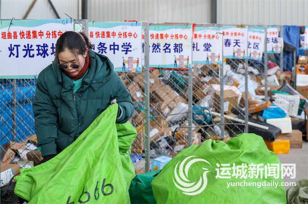 1月23日,在垣曲县乡村e镇物流配送中心内,工作人员在加紧分拣订单。