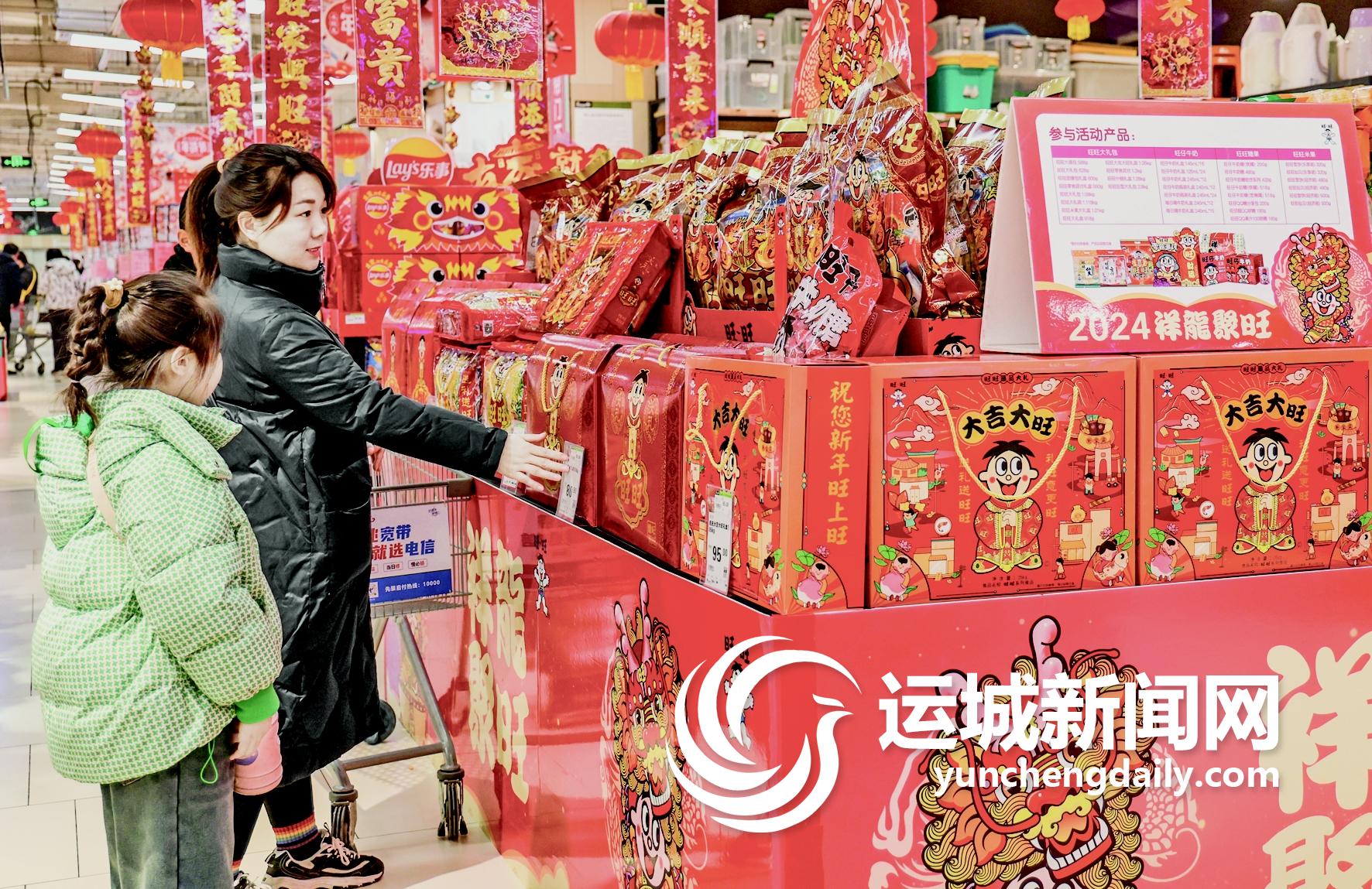 市区各大商超,新年元素占据C位。红色条幅、彩色气球等各种饰物挂满卖场,年味十足。“龙”形象成了礼品店的主打元素,从发夹到玩偶,从红包到笔记本,各类产品的包装设计上,随处可见“龙”的身影。过新年穿新衣,喜气的红色是新年服装的主打色,或是三两好友结伴,或是一家同行,熙熙攘攘的商场里,男女老少挑选着自己心仪的服饰。商家企业大搞促销,琳琅满目的年货礼包堆砌在超市显著位置,市民在欢快喜庆的音乐里享受着一站式购足年货的便捷服务。