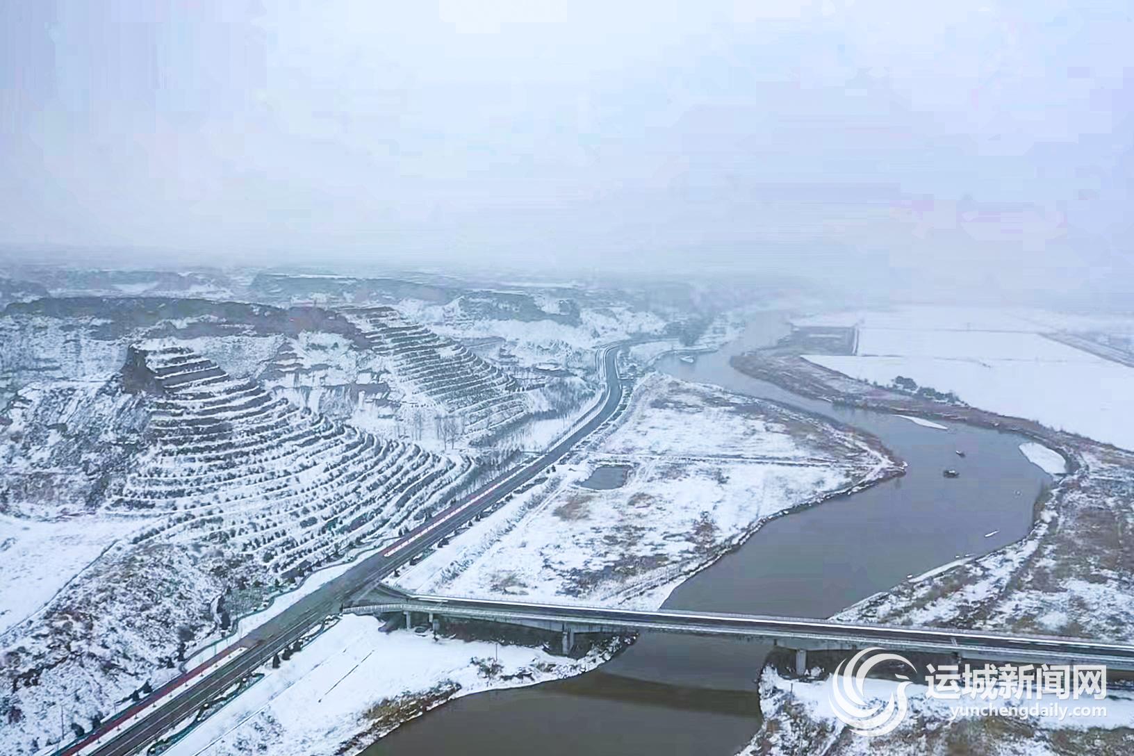1月18日,2024年的第一场雪让汾河两岸一片苍茫。上午,距离万荣县后土祠不远处的汾河防汛抢险联通桥上,观景的游客来了一拨又一拨,笑声传到宽阔的河面,随着波纹轻轻漾开。