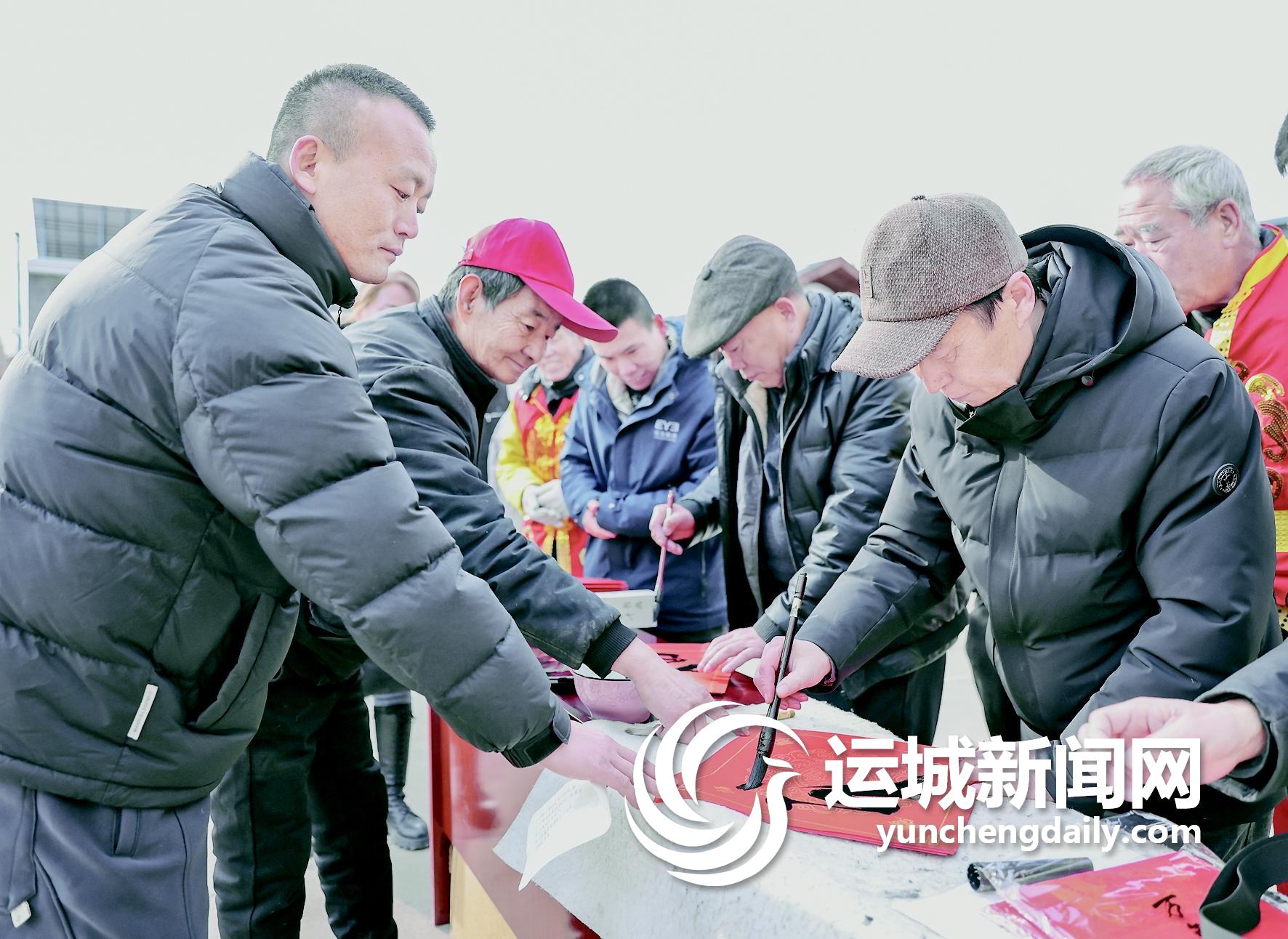 与此同时,书法爱好者正在书写“普天同庆新春至,美丽乡村平安行”“文明守法平安行,共筑平安中国年”等一副副交通安全提示语春联。民辅警一边发放“福”字和春联,一边向群众讲解交通安全常识,将“年货”送给村民的同时,也将“平安”传递给村民。