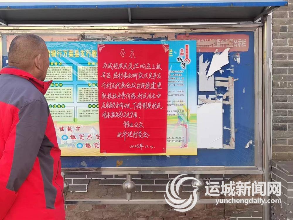 西村乡徐家庄村生活用水价格从5元/立方米下调至3元/立方米,下降比例达40%;